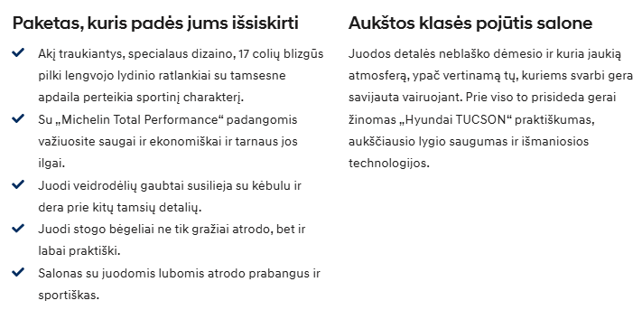 „TUCSON Style“ standartinė kaina 33 999 €, „Black Edition“ paketas 699 €.